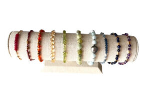Collections feature semi-precious gemstones, freshwater pearls, ocean-inspired shells, silk, and the joyful sparkle of Swarovski crystals — curated by color, shape, and the energetic properties of each material.